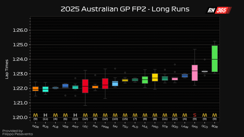 Below is the long-run data for the entire field from FP2 in Melbourne and the push lap data.