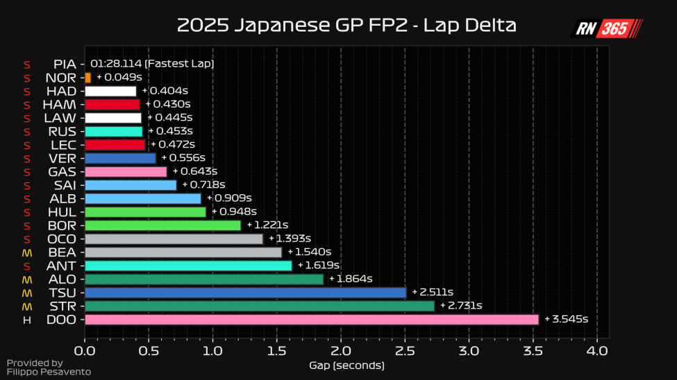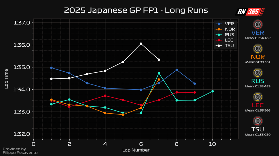 As such, the only long run data possible to analyse comes from FP1, but this is caveated with the different fuel loads among the top contenders.